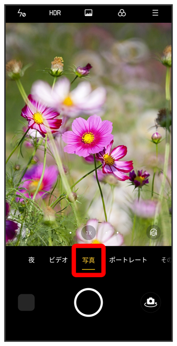 - 撮影モードを左右にドラッグしても切り替えられます。
