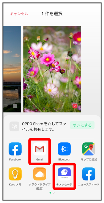 写真/動画一覧画面で送信する写真/動画をタップ画面の指示に従って操作