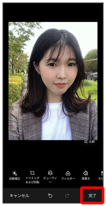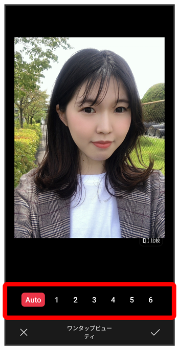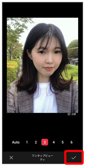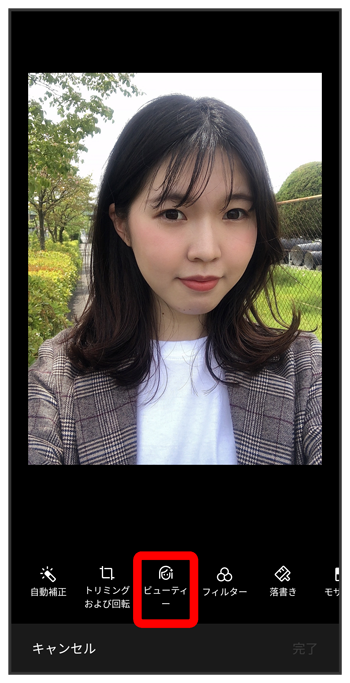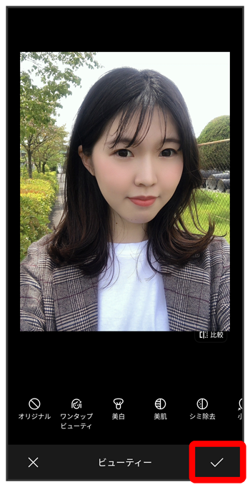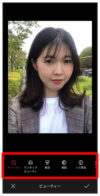 人の顔を検知して、小顔、美肌などの美顔加工をすることができます。