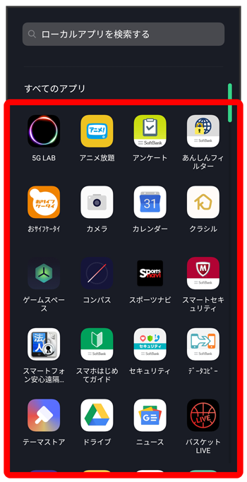 アプリドロワー画面が表示されます。