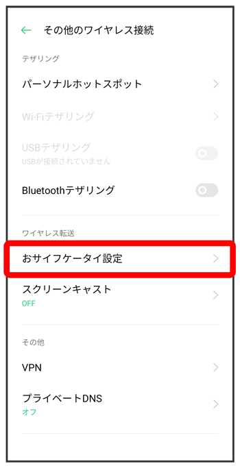 おサイフケータイ®設定画面が表示されます。