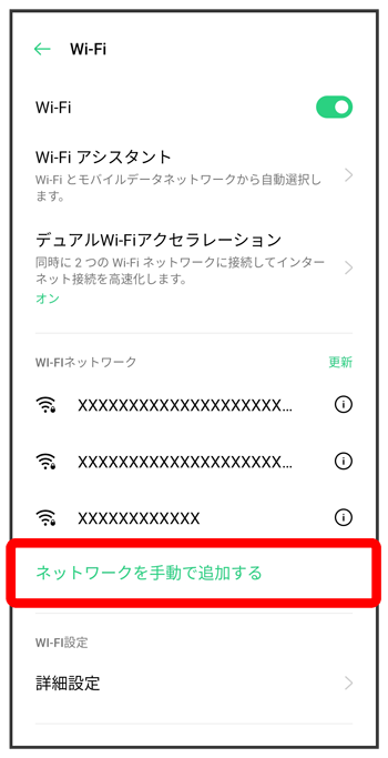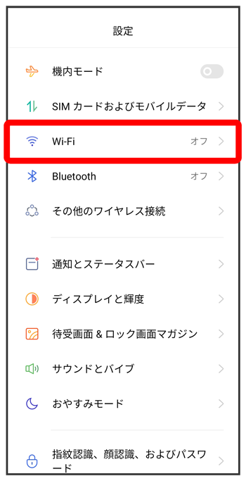 Wi-Fi設定画面が表示されます。