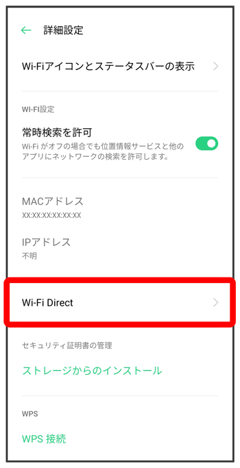 Wi-Fi Directを利用すると、Wi-Fiネットワークやインターネットを経由せずに、ほかのWi-Fi Direct規格対応機器と、簡単にWi-Fi接続することができます。