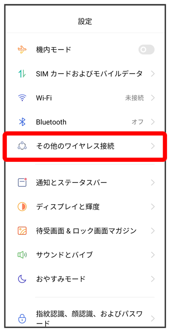 その他のワイヤレス接続画面で名前を入力セキュリティを選択必要に応じてパスワードを入力