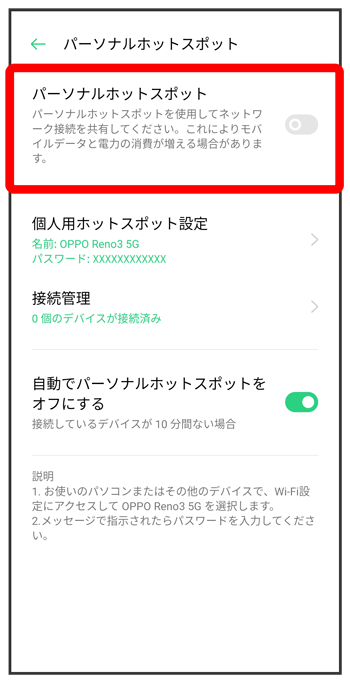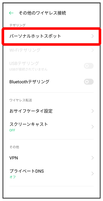 Wi-Fiテザリング(モバイルネットワーク接続時)の設定をする