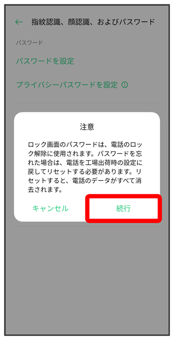 - ロック画面パスワードをすでに設定しているときは、ロックを解除する操作を行います。