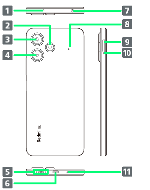 | SDカード/SIMカードトレイ | SDカードやSIMカードを取り付け/取り外しできます。 |