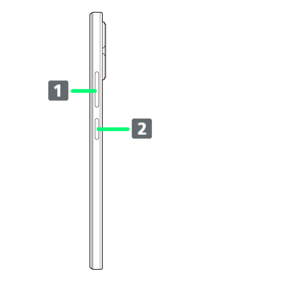| 電源キー/指紋認識センサー | 画面消灯/点灯を行います。 長押しで電源ON、音量キー(大)と同時押しで電源 OFFを行います。 指紋認証による、ロック画面のロック解除に利用します。 |
