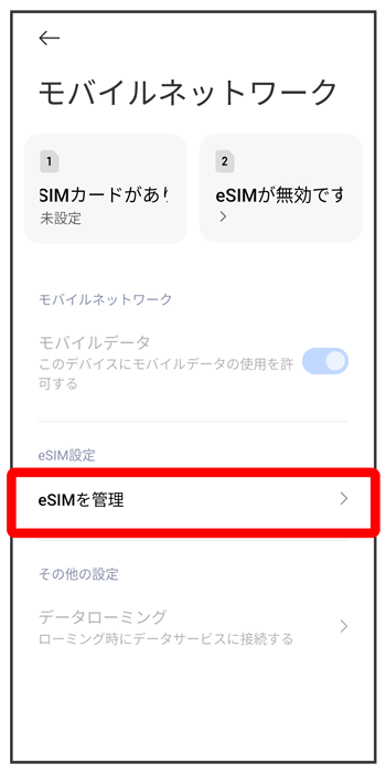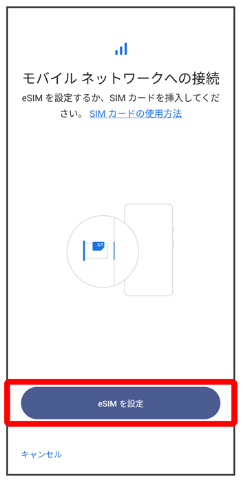 - をタップするとeSIMの設定ができます。以降は画面の指示に従って操作してください。