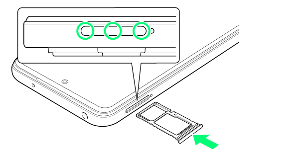 - ○部分をしっかりと押し、本体とSDカード/SIMカードトレイにすき間がないことを確認してください。