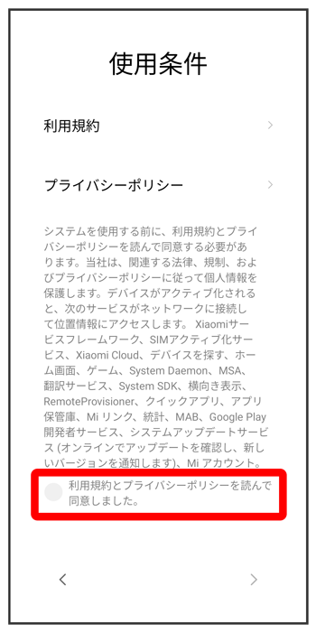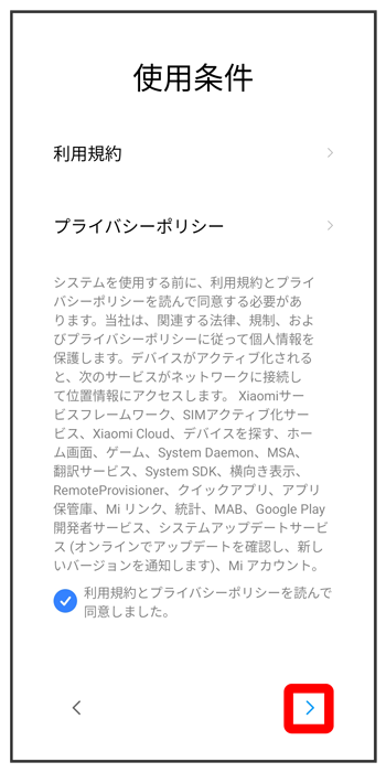 利用規約とプライバシーポリシーを確認して、