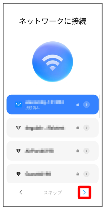- Wi-Fiネットワークに接続しないときは、をタップします。以降は、画面の指示に従って操作してください。