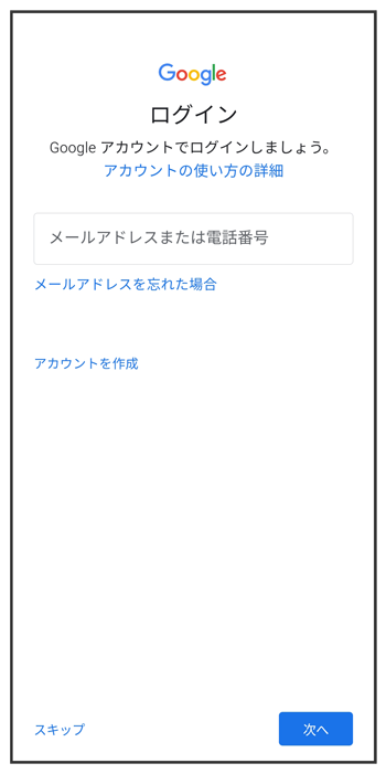 - Google アカウントを設定しないときは、をタップします。