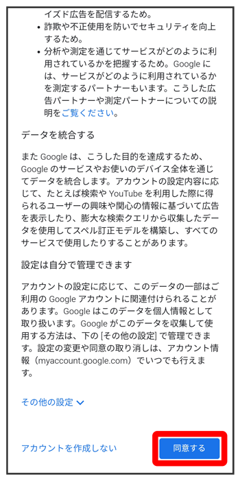 画面の指示に従って、Google アカウントを設定