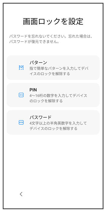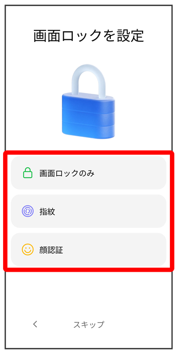 画面の指示に従って、画面ロックや指紋によるロック、顔認証を設定