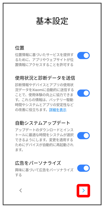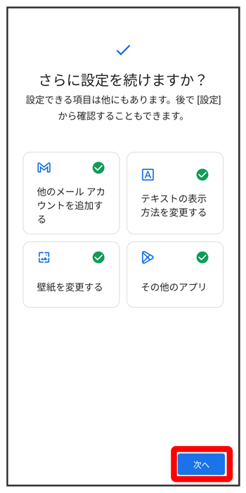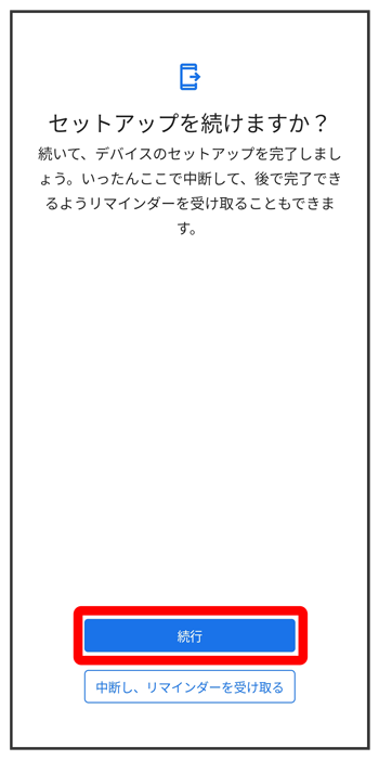 - 初期設定を中断し、あとでリマインダーを受け取るときは、をタップします。