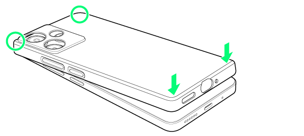 - 取り付けるときに、電源キーや音量キーを押さないようにご注意ください。