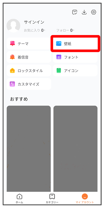 お買い上げ時に登録されている壁紙を変更する方法を例に説明します。