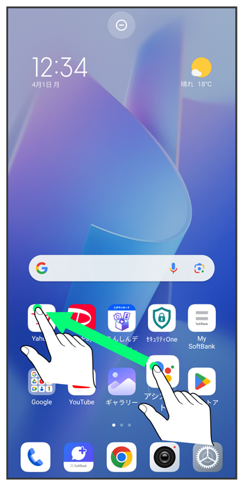 ホーム画面でフォルダに入れたいアイコンをロングタッチ
