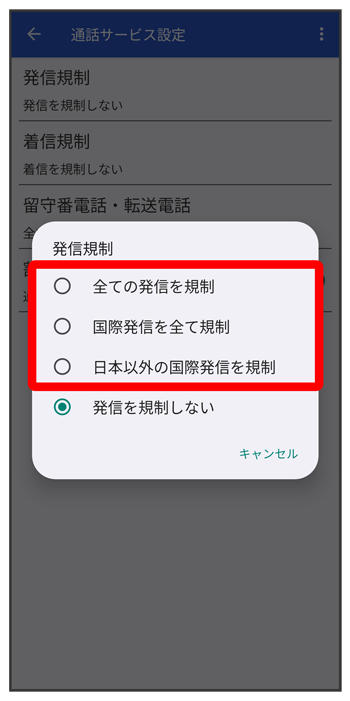 発着信規制サービスが設定されます。