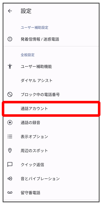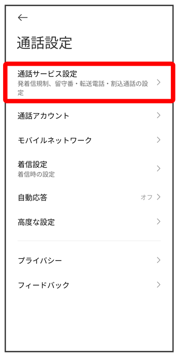 通話サービス設定画面が表示されます。