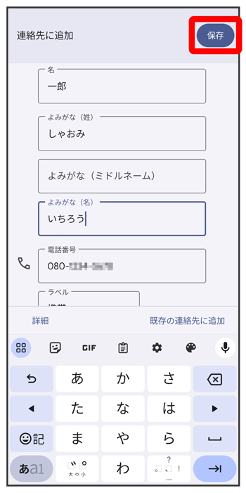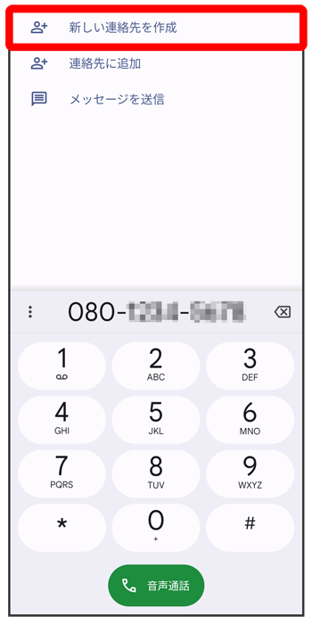 ダイヤルパッドをタップして登録したい電話番号を入力