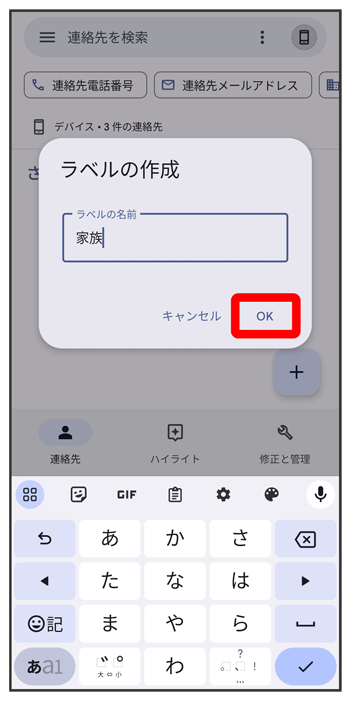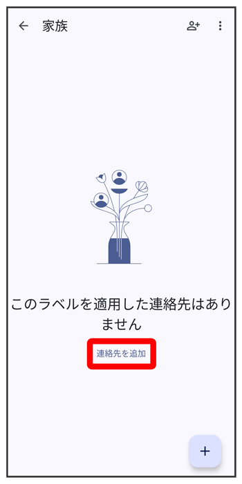 をタップすると、新たに連絡先を登録してラベルに追加できます。