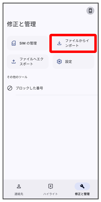 SDカードに保存(バックアップ)した連絡帳データを読み込み(インポート)できます。