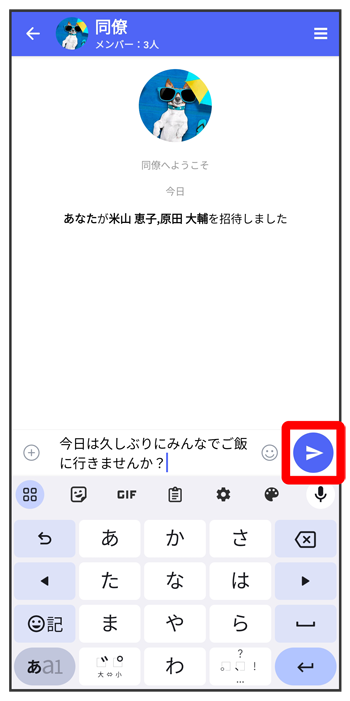 グループメッセージ画面が表示されます。