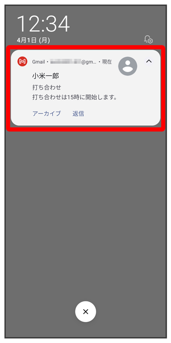 新着メールを受信するとステータスバーに