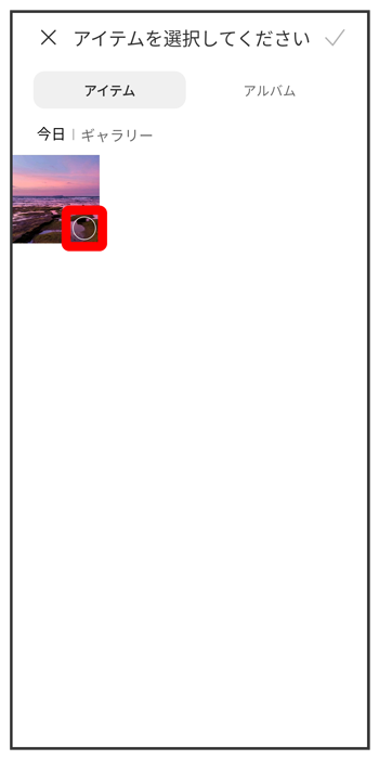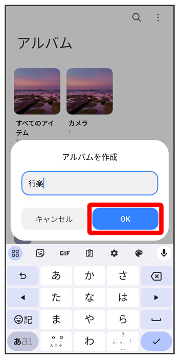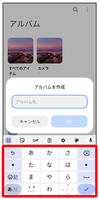 アルバム画面で写真/動画を追加したいアルバムをタップこちらで検索できます