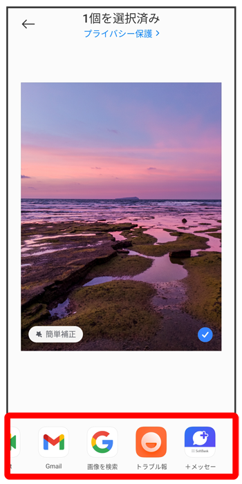 写真/動画一覧画面で送信する写真/動画をロングタッチ(- 写真/動画をタップするたびに、選択(