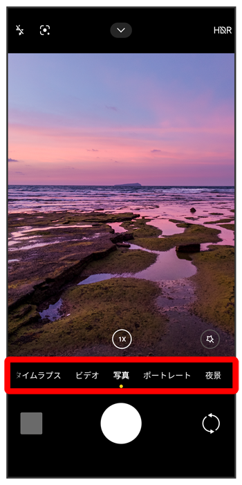 - 撮影モードを左右にドラッグしても、撮影モードを切り替られます。