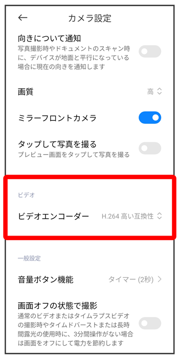 | ビデオエンコーダー | ビデオエンコーダーを設定します。 |