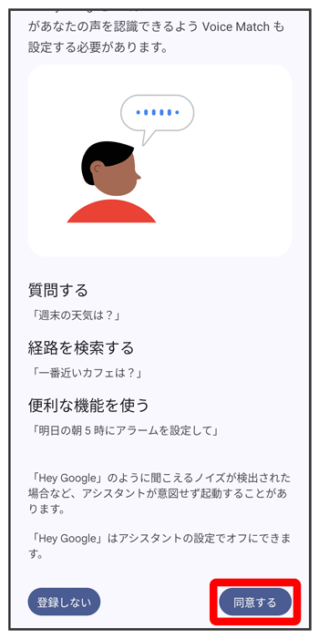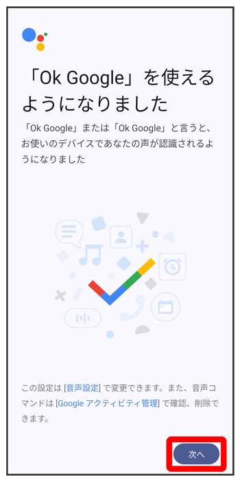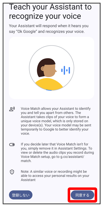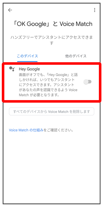 - 以前にVoice Match機能を設定したことがある場合は、が有効になります(