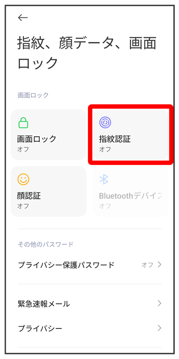 - すでに画面ロック解除方法を設定しているときは、ロックを解除する操作が必要です。
