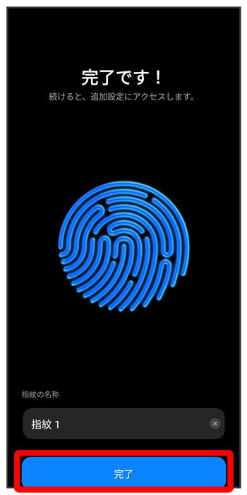 指紋の登録が完了し、指紋設定画面が表示されます。