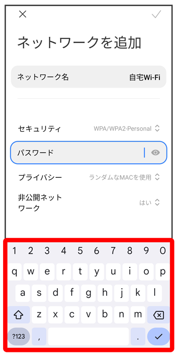 - セキュリティで保護されていないWi-Fiネットワークのときは、パスワードを入力する必要はありません。