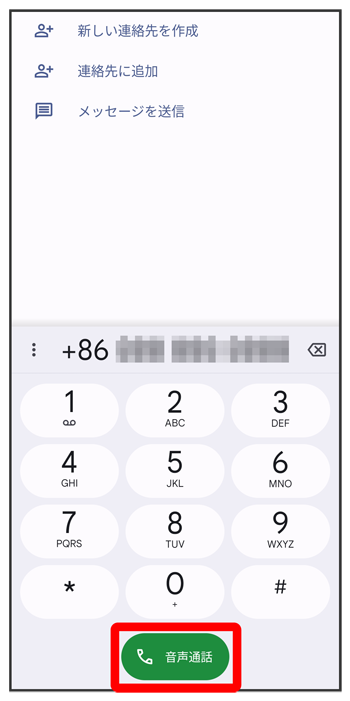 国番号のあとに相手の電話番号(先頭の「0」を除く)を入力