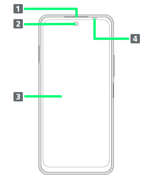 | 受話口/スピーカー | 相手の声、音楽や動画などの音声が聞こえます。 |