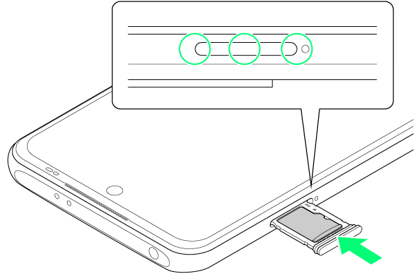 - SDカードがSIMカード/SDカードトレイから浮かないように、確実にはめ込んでください。