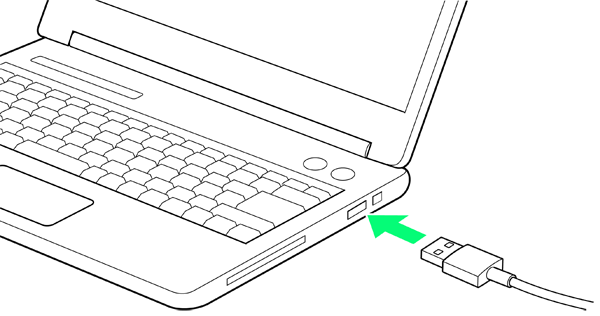 パソコンのUSB端子に、PC接続用USB Type-CケーブルのUSBプラグを差し込む