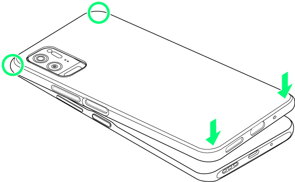 - 取り付けるときに、電源キーや音量キーを押さないようにご注意ください。