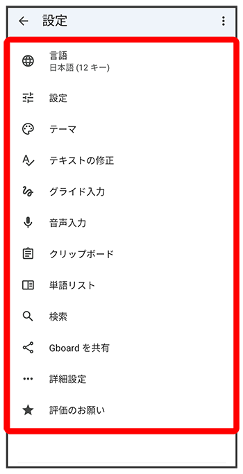 | 評価のお願い | Gboardに満足しているかどうかのアンケートに答えることができます。 |