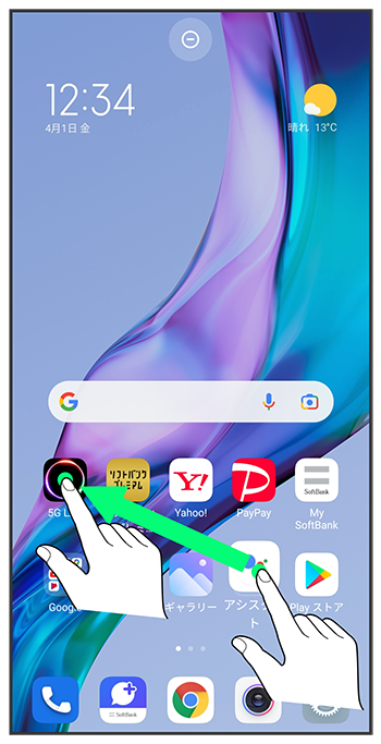 ホーム画面でフォルダに入れたいアイコンをロングタッチ