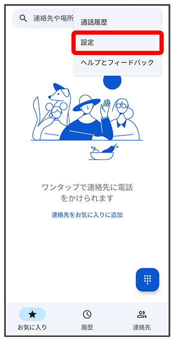 | 通話アカウント | ・通話サービス設定 発信規制、着信規制、留守番電話・転送電話、割込通話の設定をします。 ・通話アカウント インターネット通話の設定をします。 ・SIMカードとモバイルネットワーク モバイルネットワークの設定をします。 詳しくは、「SIMカードとモバイルネットワーク」を参照してください。 ・着信設定 着信時の動作を設定します。 ・自動応答 ヘッドセットまたはBluetooth®デバイスに接続しているときに、自動的に着信応答するかどうかを設定します。 ・高度な設定 応答と呼び出しに関する設定やSIPの設定、発信者番号、発信番号制限、DTMFトーンの設定をします。 ・プライバシーポリシー プライバシーポリシーを確認できます。 |