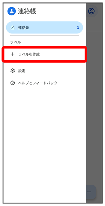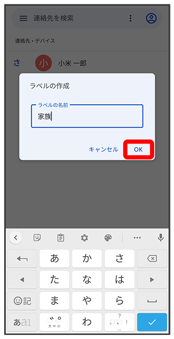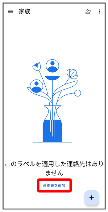 をタップすると、新たに連絡先を登録してラベルに追加できます。