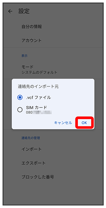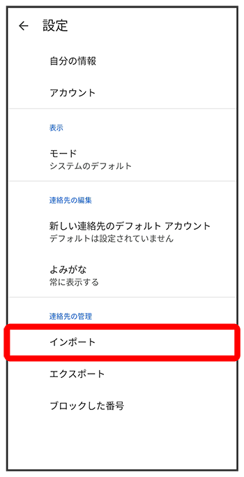 SDカードに保存(バックアップ)した連絡帳データを読み込み(インポート)できます。