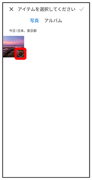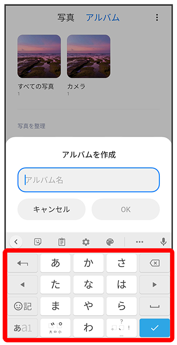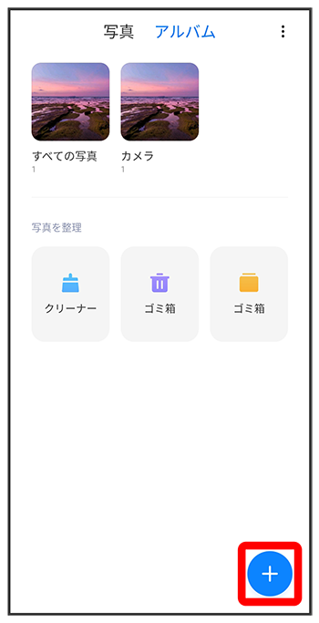 アルバム画面で写真/動画を追加したいアルバムをタップこちらで検索できます