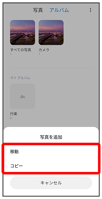 アルバム画面で編集したいアルバムをロングタッチ(アルバムに写真/動画を追加する